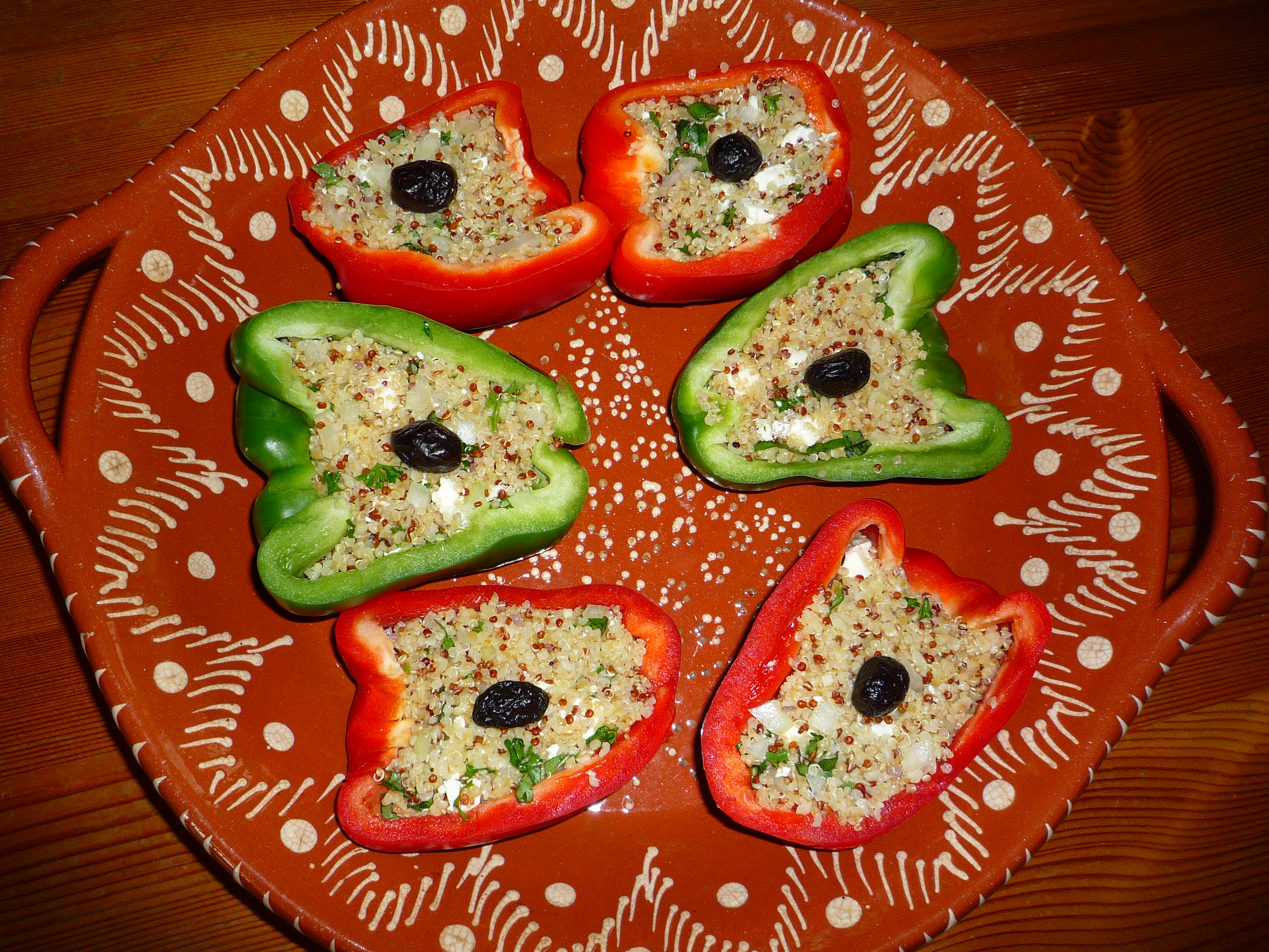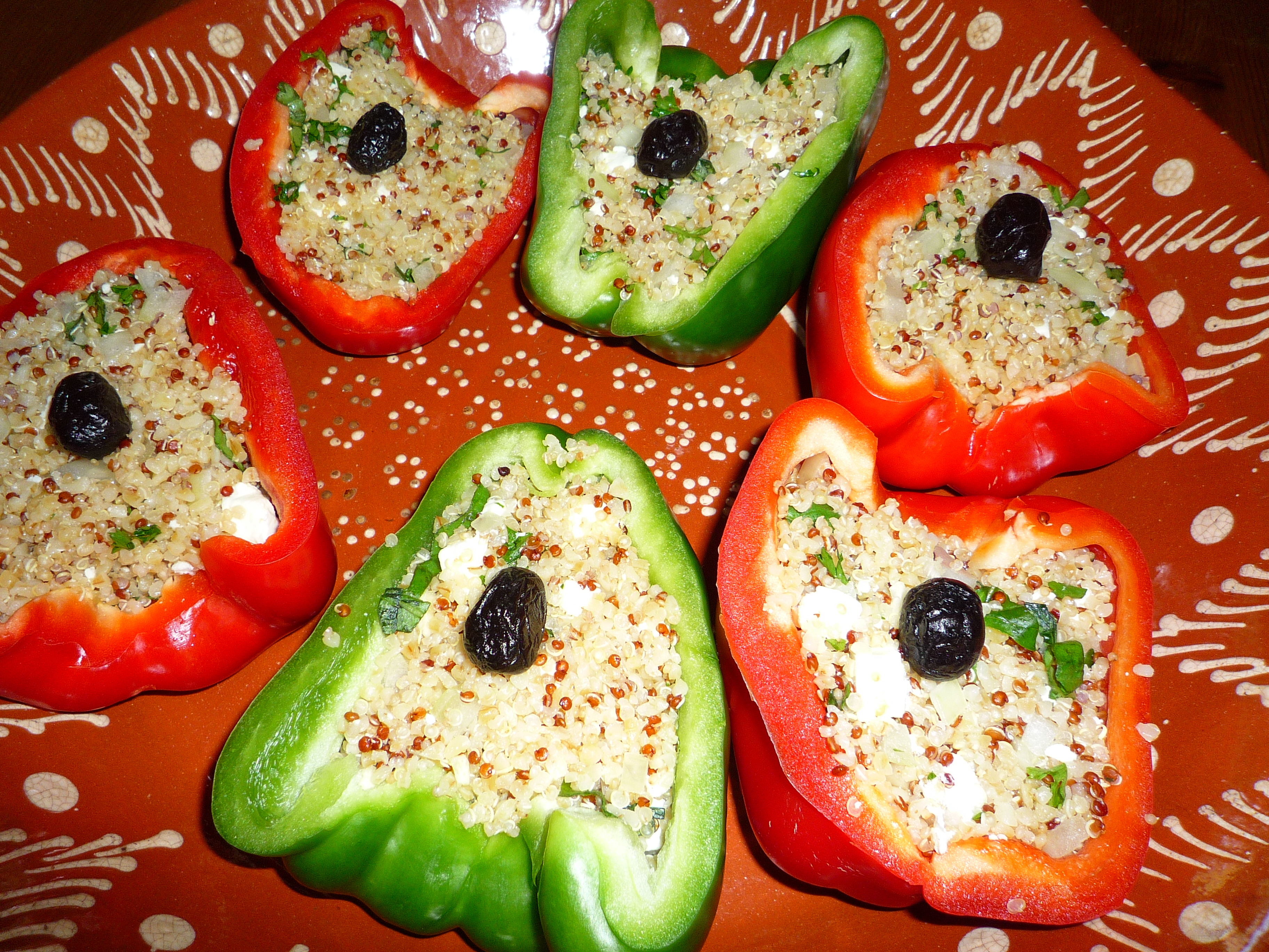- Farcir les poivrons avec le mélange quinoa, feta, oignon, ail, persil