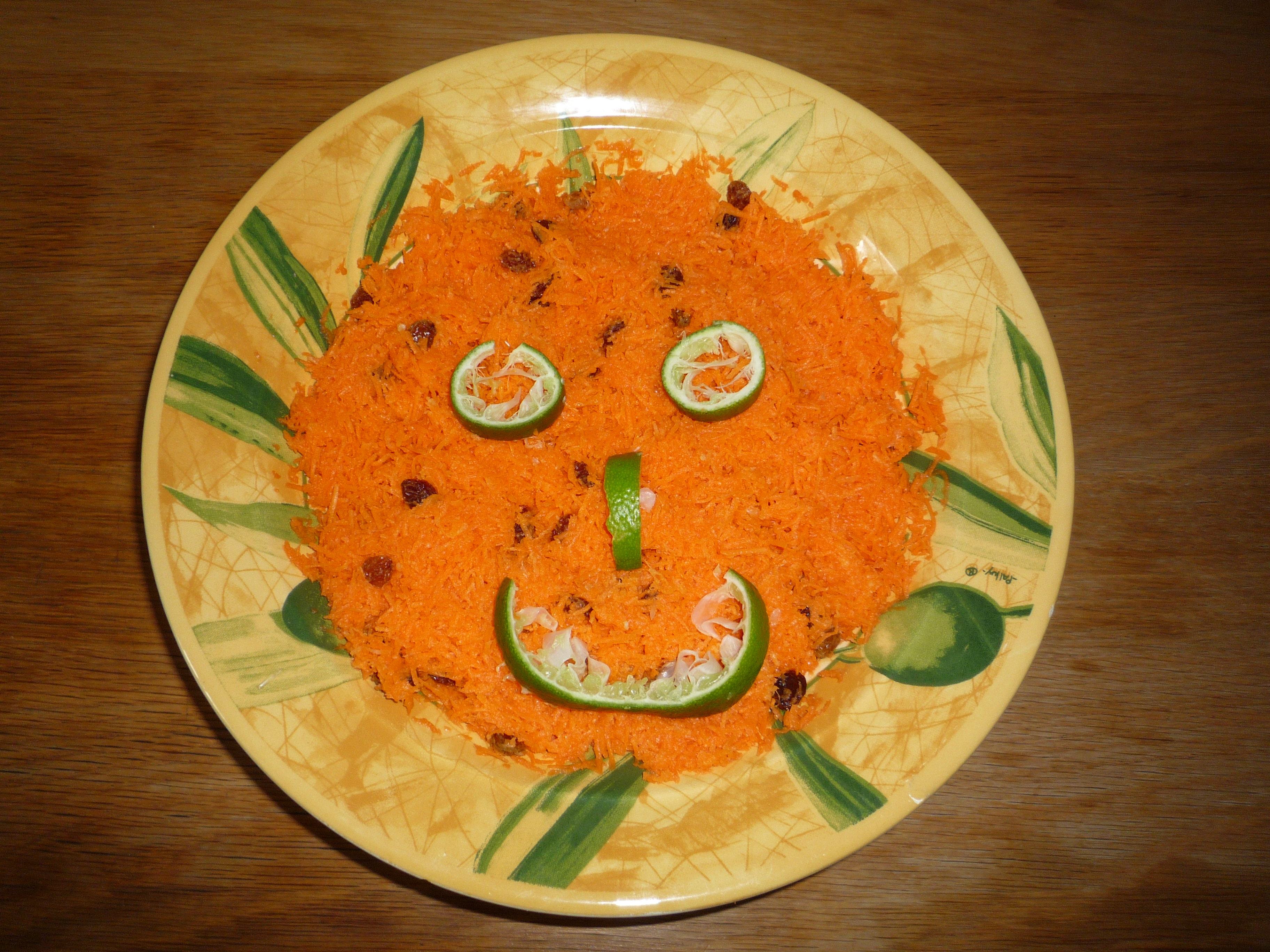 • Dans un saladier, mélanger les carottes, le gingembre, le jus de carotte, le citron vert, les raisins et le sel